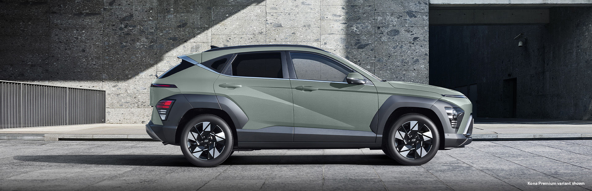The KONA’s futuristic SUV lines are further enhanced by bold, sporty alloy wheels. The KONA variants feature 18” alloys whilst the KONA N Line Premium has 19” alloys.